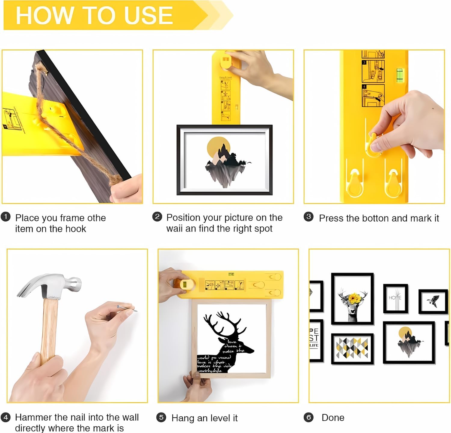 No more crooked frames, no more guesswork. Our simple tool ensures flawless alignment in minutes, saving your walls from unnecessary holes and scratches. Transform your space with precision and confidence, hassle-free!